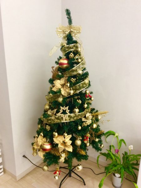 六町さくら歯科のクリスマスツリーは✧ゴールド✧で飾り付けをしていて