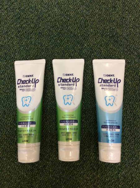 フッ化物高濃度配合の「チェックアップスタンダード」の取り扱いがあります。