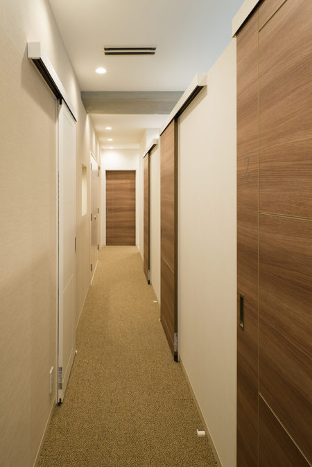お名前をお呼びしましたら、受付の後ろに進んでいただき、この廊下から指定の診察室へお入りいただきます。
